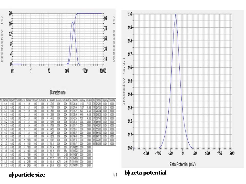 A key aspect of phytosome research that provides valuable insights into the quality and various forms of a sample is the evaluation of particle size and shape. The optimized phytosomes were characterized for both PS and Zeta Potential. Particle size was measured using the Dynamic Light Scattering (DLS) technique with a particle size analyzer (SZ-100 Nano Particle Analyzer). The Polydispersity index (PDI) is a crucial parameter in nanoparticle and colloidal systems, calculated by using the following formula.