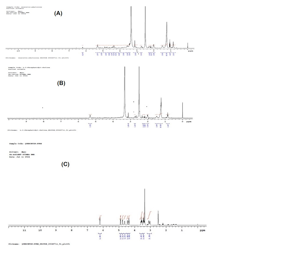 Optimized batches of quercetin phytosomes were actually analysed for compatibility, Particle Size (PS), and Zeta Potential (ZP) using Fourier Transform Infra-Red (FTIR), Differential Scanning Calorimetry (DSC), Zeta potential and Particle Size (PS), X-Ray Diffraction (XRD), Nuclear Magnetic Resonance (NMR), Transmission Electron Microscopy (TEM). Additionally, the batches were assessed for Percentage Yield (PY) and Entrapment Effeciency (EE) in order to optimally synthesise quercetin phytosomes [37, 38].