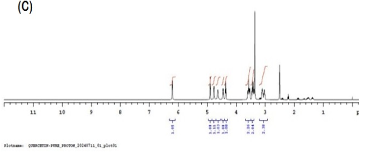 NMR is a flexible analytical method that provides detailed structural information about both organic and inorganic molecules. In NMR, magnetic nuclei of certain isotopes are aligned by a strong external magnetic field and exposed to electromagnetic radiation at a specific frequency. The principle behind NMR is that certain nuclei occupy distinct spin states when exposed to an external magnetic field. This study utilized proton NMR, which focuses on hydrogen-1 nuclei within a molecule to determine its structure [45]. The sample was placed in a thin-walled glass vial and positioned inside an electronic coil, which was housed within a powerful magnet at the core of the NMR spectrometer (Model: Varian 400 MHz NMR system). The magnet aligns the atomic nuclei within the sample, creating a consistent resting orientation.
