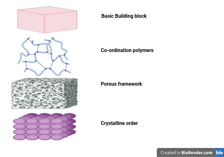 Fig. 1: A graphic schematic of the MOF structural hierarchy