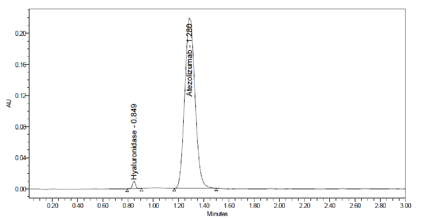 | Instrument | UPLC | HYAL and ATEZ are non-volatile with UV absorbance; thus, a UPLC method with a UV detector was deemed suitable |