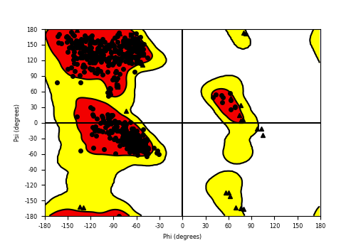 Protein structure information was obtained from the Protein Data Bank (PDB). The selected target consists of 355 residues, and we utilized the structure with PDB ID: 4ZZZ. Using the default settings, the entire structure was pre-processed with Maestro’s Protein Preparation module. Missing loops, atoms, and side chains in the backbone were reconstructed using the Prime module in Maestro. The Ramachandran plot analysis indicated that 99% of the residues fall within the allowed regions [30] (fig. 1). Additionally, molecular modeling was performed to simulate the influence of water molecules on the catalytic domain.