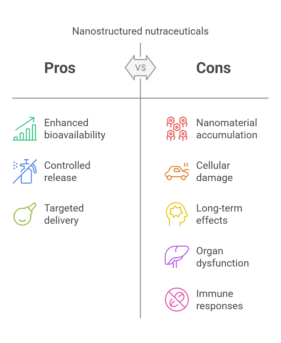 Fig. 3: A critical analysis of the functional benefits and limitations in the advancement of nanostructured nutraceutical delivery systems