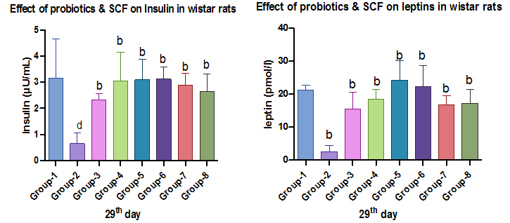 Fig. 10 and 11: Effect of probiotics and SCFAs on insulin and leptin