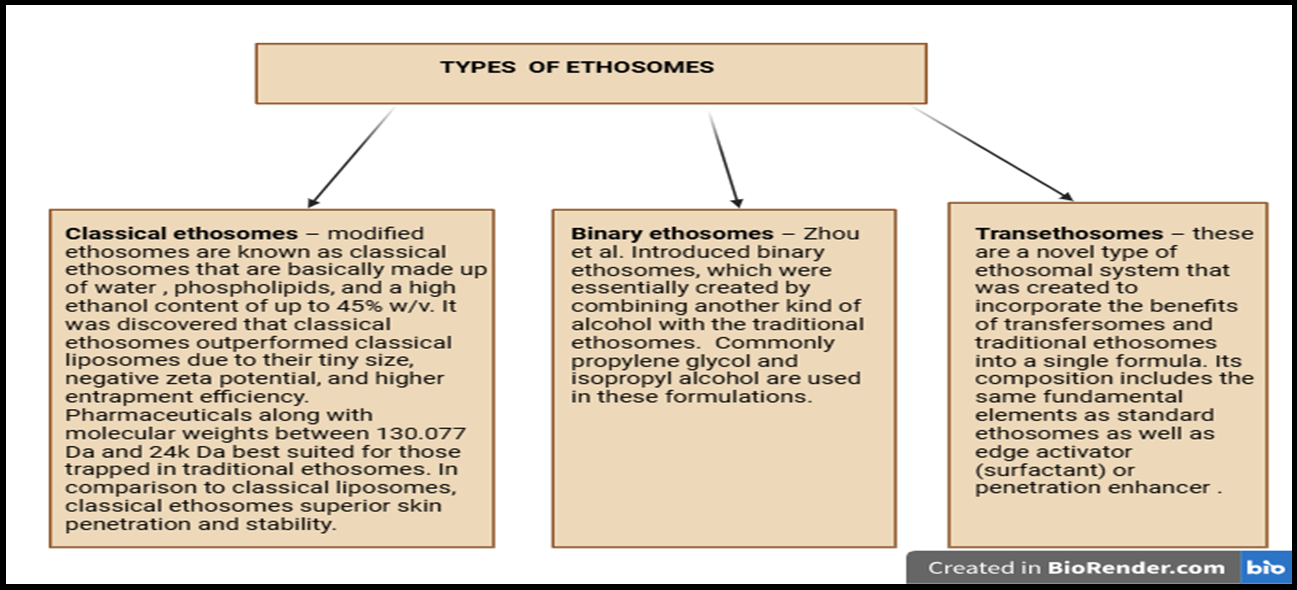 Ethosomes are an advanced novel carrier of TDDS that can be classified based on their composition and application [15]. As shown in fig. 2, ethosomes are classified into three types: classical ethosomes, binary ethosomes, and trans ethosomes.