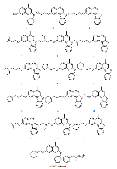 Table 2: Docking scores of ligand1-16 and reference compound R-(-) –deprenyl with protein amine oxidase
