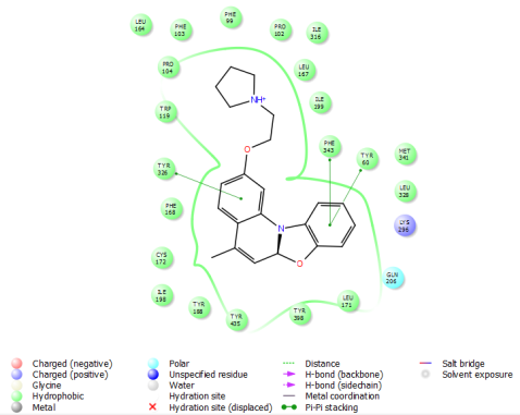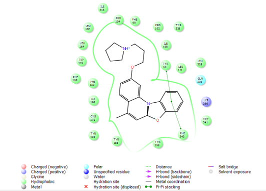 | 10 | Leu164, Leu167, Ile198, Met341, Leu328, Leu171, Tyr188, Tyr435, Cys172, Ile316, Trp119, Phe168 | Gln206 | Tyr326, Tyr60, Phe343 |