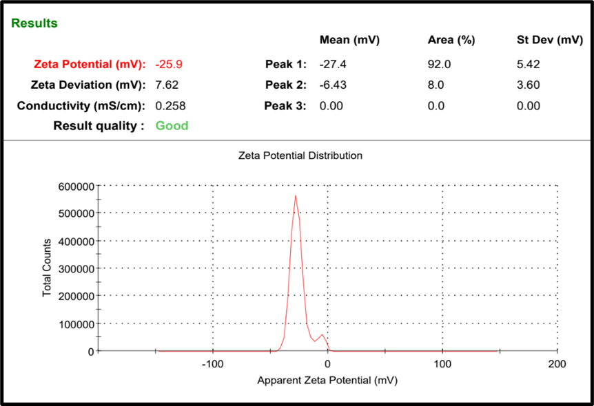Using a Malvern Zetasizer, the zeta potential of the optimized formulation was assessed at 25ºC with 90° detection angle following dilution with ultra-pure water [15].