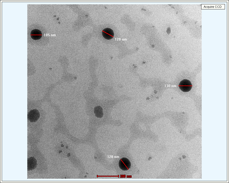 The morphological characteristics of the optimized formulation were examined using TEM analysis. For sample preparation, a droplet of SLN dispersion was placed onto a 400-mesh carbon-coated copper grid, with excess solution carefully blotted using tissue paper. Staining was performed using 2% w/v of phosphotungstic acid. After air-drying at ambient temperature, the samples were imaged at 4000X magnification under an accelerating voltage of 200 kV [16].