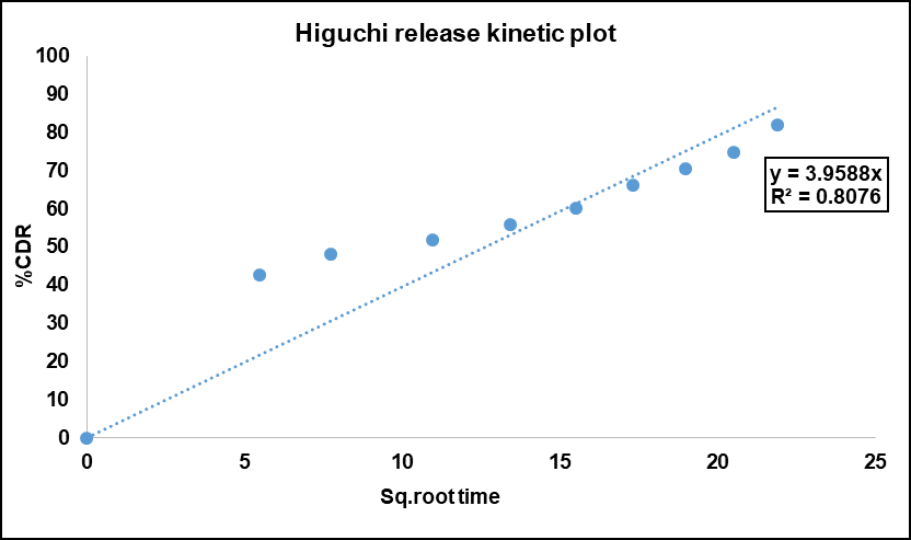Fig. 8: Higuchi release kinetics model of Neomycin sulfate-loaded SLNs