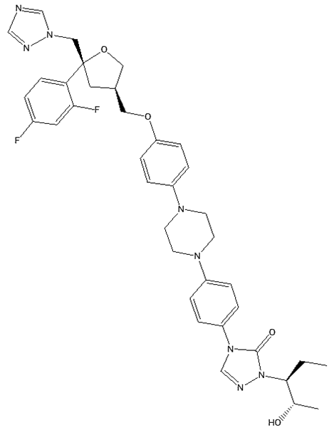 Kujawski J, Czaja K, Dettlaff K, Zwawiak J, Ratajczak T, Bernard MK. Structural and spectroscopic properties of posaconazole experimental and theoretical studies. J Mol Struct. 2019;1181:179-89. doi: 10.1016/j.molstruc.2018.12.074.