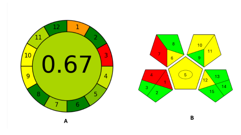 Fig. 5: Greenness analysis of developed method A) AGREE; B) GAPI