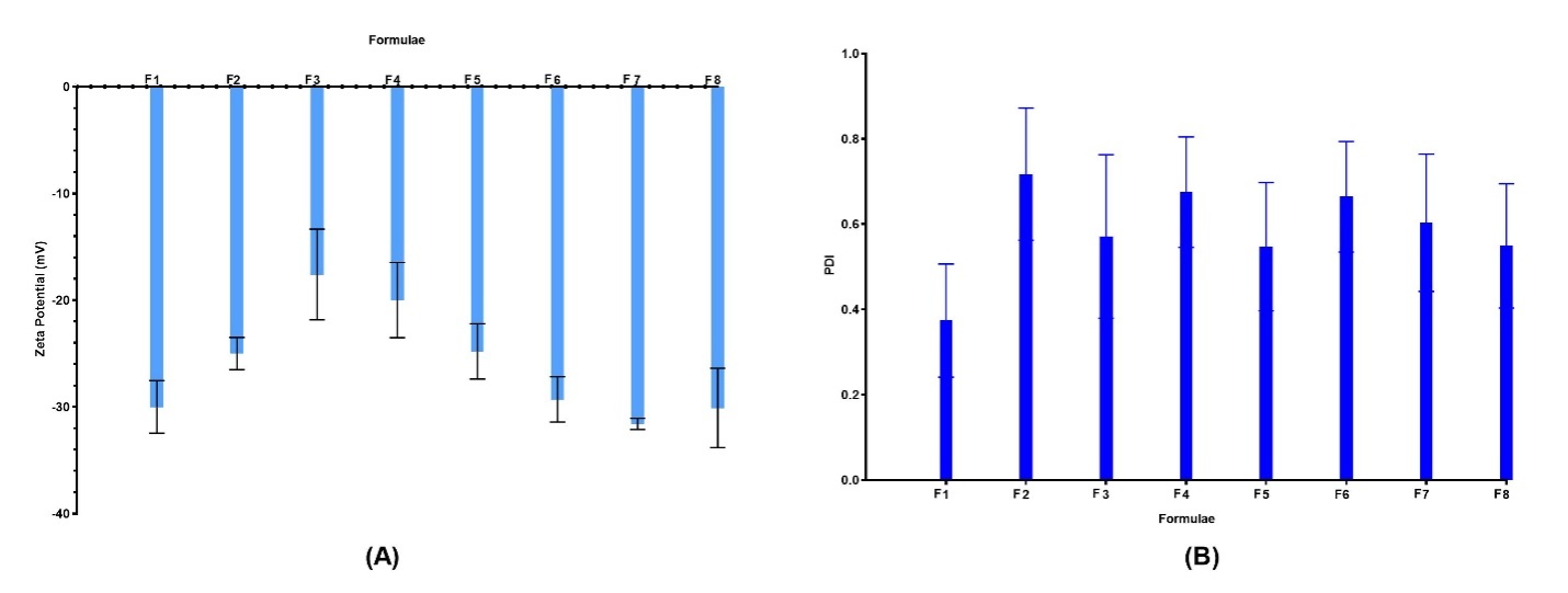 A Malvern Zetasizer from Malvern Instrument Ltd., UK, was employed to analyze the vesicle size of the formulated Spirusomes through dynamic light scattering at a consistent temperature of 25±2 °C. Concurrently, the zeta potential of the specific ATOR-SP system was also determined at the same temperature using a 90° scattering angle. To obtain readings within the sensitivity range of the instrument, the prepared Spirusomes were diluted 10 times with distilled water before the measurements. The mean values from triplicate measurements were recorded and reported for each parameter [30, 31].
