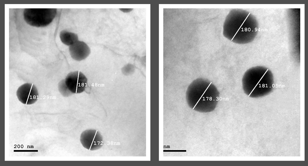 The determination of the morphological features of the prepared optimized Spirusomes was carried out via transmission electron microscopy (TEM). In typical preparations, samples were diluted to appropriate optical densities with distilled water. The diluted sample (one drop) was placed onto a copper grid and allowed to dry for 10 min. Subsequently, staining was carried out using Phosphotungstic acid, and the sample was permitted to dry at room temperature for another 10 min. An examination of the sample was conducted using TEM equipment (JEOL, JEM-1230, Tokyo, Japan) [37, 38].