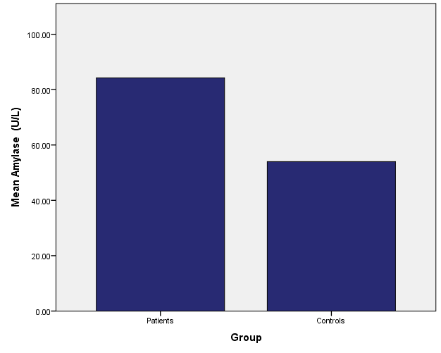 Fig. 1: Median of serum amylase levels for patient and control groups