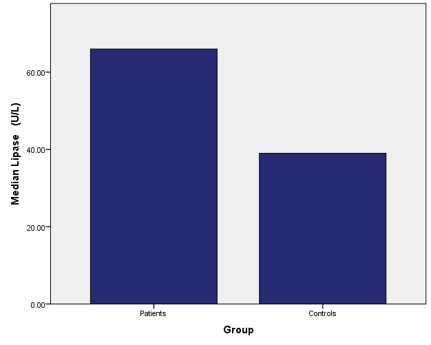 Fig. 2: Median of serum lipase levels for patient and control groups