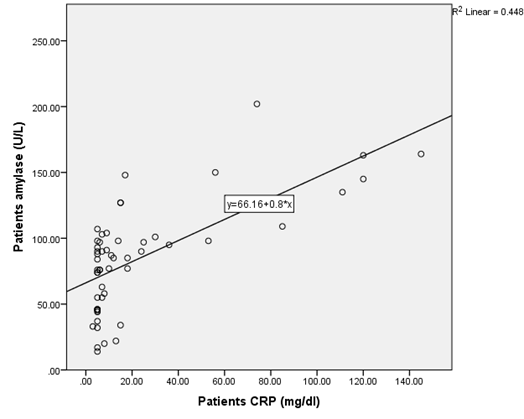 Fig. 4: Correlation of CRP with Amylase in the patient’s group