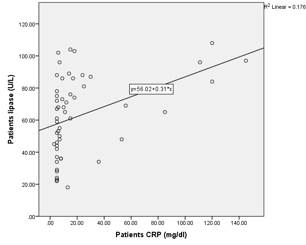 Fig. 5: Correlation of CRP with lipase in the patient’s group