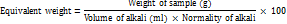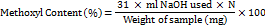 25 ml of 0.25 N NaOH was added to the neutral solution that was produced by the equivalent weight determination step. After thoroughly mixing the solution, it was left to stand for half an hour, neutralized the excess NaOH with 0.25N HCl, and titrated the released methanol with 0.25N NaOH. The following formula is used for the determination of methoxyl content [10].