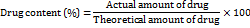 In order to achieve uniformity, the 2x2 cm² film was sliced, put into a 100 ml volumetric flask containing phosphate buffer, and shaken with a mechanical shaker. The drug content was determined using spectroscopy at 296 nm following filtration.