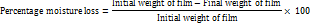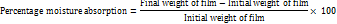 The films were kept in their weight by using desiccators that contained anhydrous calcium chloride. After three days, the films were taken out and weighed. The following formula can be used to calculate the rates of moisture absorption and loss.