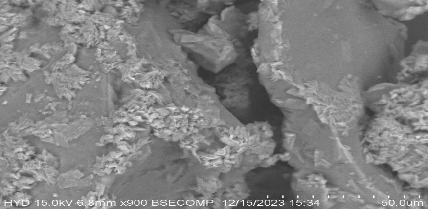 The extracted muskmelon pectin's surface morphology was investigated using a SEM JSM 6100 (M/s JOEL, Tokyo, Japan). Images showing the surface arrangement were obtained by scanning the extract powder at an acceleration voltage of 10 kV. The SEM image of the extracted muskmelon pectin is shown in fig. 2 [16].