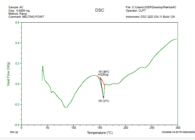 The purpose of the DSC studies was to examine the extracted muskmelon pectin's thermodynamic compatibility. About three to five percent of the extract was put in an aluminum pan and heated at a temperature of 10 °C per minute to 300 °C in an atmosphere of nitrogen at a flow rate of 20 ml per minute, as illustrated in fig. 3