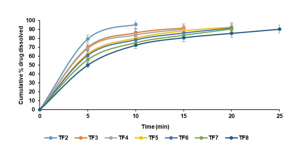 | S. No. | Ingredients (mg) | TF1 | TF2 | TF3 | TF4 | TF5 | TF6 | TF7 | TF8 |