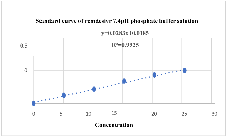 Fig. 5: Standard calibration plot of REM 7.4 pH phosphate buffer solution by UV-Visible spectroscopy, REM: Remdesivir