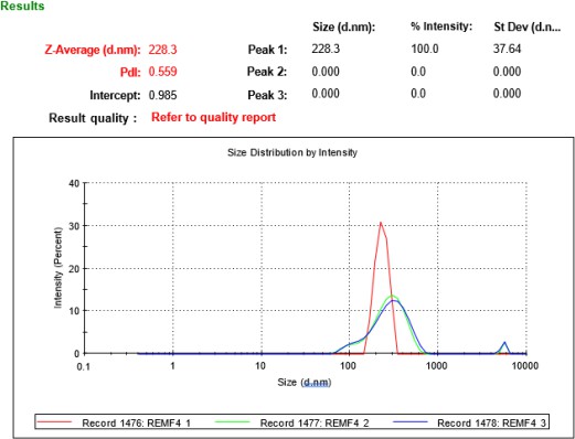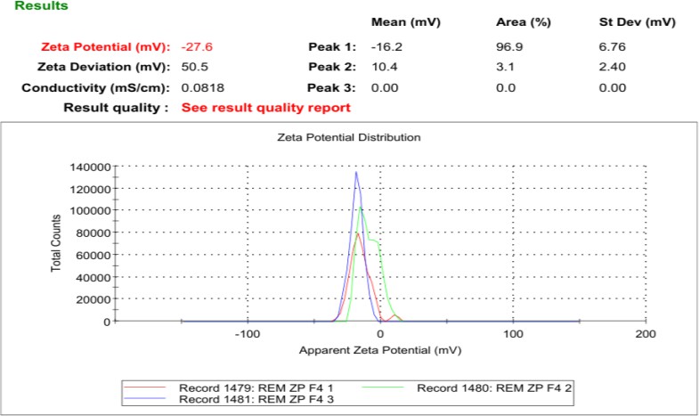 Fig. 7: Mean Zeta size of an optimized formulation of F4, REM: Remdesivir