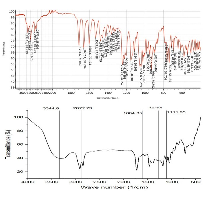 FT-IR spectroscopy was utilised to assess the compatibility of the medications and polymers in the nanoparticle compositions. The FT-IR spectra of pure REM are presented in fig. 1, whereas the spectra of REM, Poloxamer-407, HPMC E-3, and their physical mixing were examined using a Hitachi 3400S (Japan) and depicted in fig. 2.