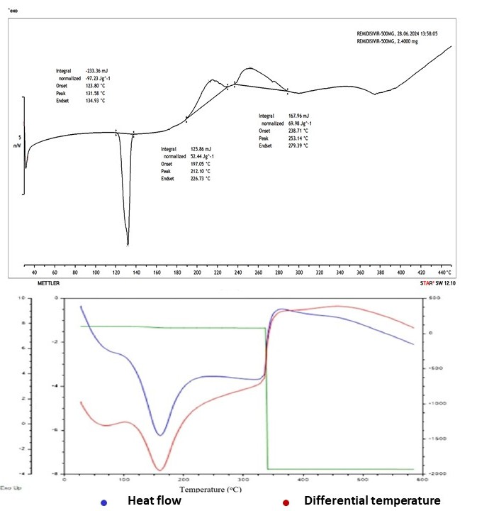 Fig. 10: Differential scanning calorimetry curve of REM and formulation F4, REM: Remdesivir