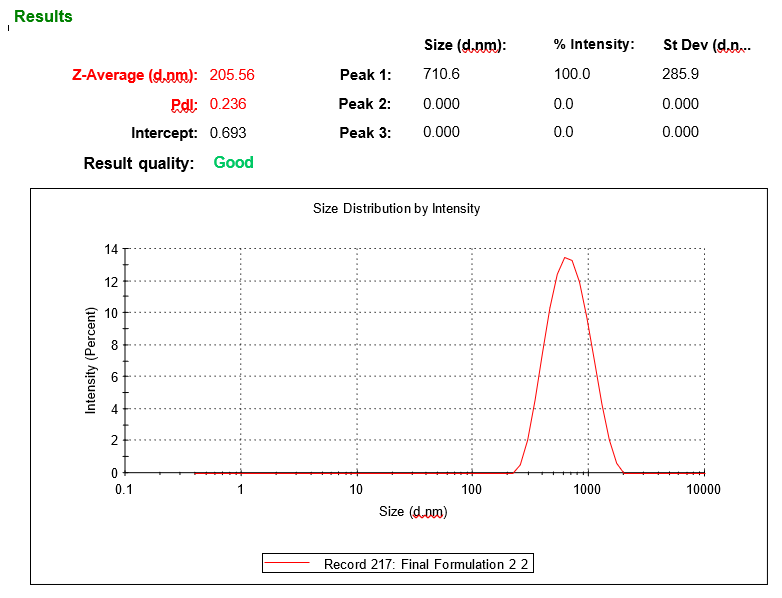 Vesicle size and PDI