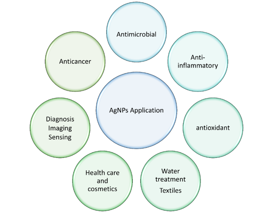 AgNPs are extensively utilized in the medical field owing to their antimicrobial characteristics, which make them effective in wound dressing [2], coatings for medical instruments [3, 4], and antibacterial formulations [5, 6]. Additionally, they are being investigated for their potential in cancer therapy [7-9], and drug delivery is attributed to their capacity to selectively target cells [10-12].