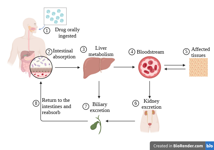 Fig. 2: Drug release and absorption dynamics of orally ingested nano sponges
