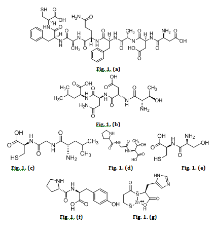 Fig. 1: Peptides from Holothuria scabra (a) DDAFQAFC, (b) TDNL, (c) LGC, (d) PGT, (e) SC, (f) PY, (g) Zinc-carnosine