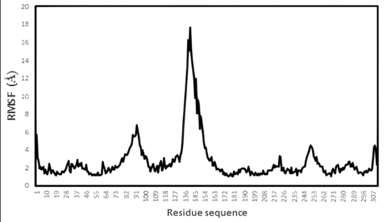 Furthermore, in fig. 7. (a) shows that the PY peptide interacts with hydrogen bonds and hydrophobic interactions with ZIP2 proteins at several residues, specifically between residues 200-300. The interaction of ZIP2 and peptide PY is based on molecular docking, the residue interactions on the PY peptide and ZIP2 protein are found at the stable residues on ZIP2. This can be seen from the stable slight fluctuations in residues 200-300 during molecular dynamics simulations (fig. 8. (c)). The fluctuations observed in RMSD, RMSF, and Rg values reflect the inherent flexibility of ZIP2, a characteristic crucial for its role as a zinc transporter [55].