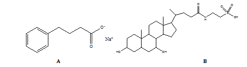 Fig. 1: Chemical structures of (A) Sodium phenylbutyrate and (B) Taurursodiol
