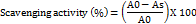 Where A0 is the absorbance of the control and as is the absorbance of the test samples