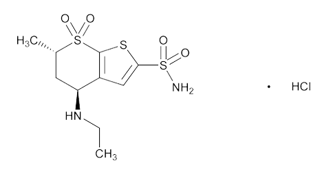 DZH is a carbonic anhydrase inhibitor that decreases aqueous humor secretion, thereby reducing IOP [3]. Chemically, it is (4S,6S)-4-(ethylamino)-6-methyl-5,6-dihydro-4H-thieno[2,3-b]thiopyran-2-sulfonamide 7,7-dioxide hydrochloride. TIM is a non-selective beta-adrenergic receptor blocking agent that reduces the production of aqueous humor [4]. Chemically, it is (S)-1-(tert-butylamino)-3-[(4-morpholin-4-yl-1,2,5-thiadiazol-3-yl)oxy]propan-2-ol maleate.