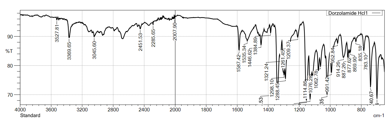 Fig. 2: FTIR-spectra of standard (USP) VS sample for dorzolamide hydrochloride (DZH)