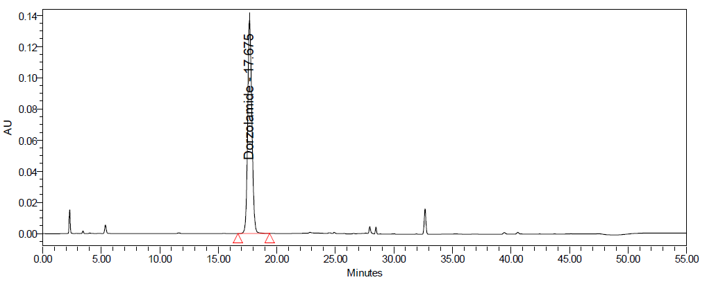 Conclusion: The developed RP-HPLC method is novel, simple, sensitive, precise, accurate, and robust for DZH and TIM in ophthalmic formulations as per the International Council for harmonisation (ICH) for stability studies to perform Quality control (QC) of bulk and finished dosage forms.
