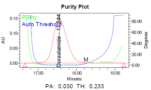 The overlay spectra of standards and samples for both drugs showed good correlation, indicating the authenticity of the drug samples used in the study [26]. The discrepancy was observed in DZM at FTIR Stretching frequency at 2285.65 vs. 2337.73 cm⁻¹ in both USP standard and Sample due to sample matrix and has no impact the quality of product.