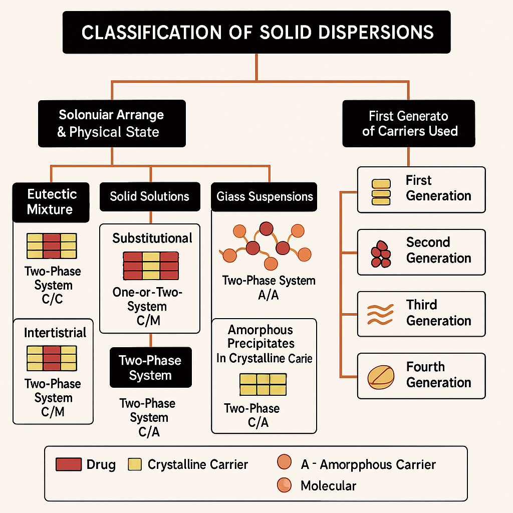 Technically, SDs can be categorized more precisely into several types: (a) eutectic mixtures, (b) solid solutions, (c) amorphous glass solutions, (d) molecular dispersions, and (e) amorphous precipitates within crystalline matrices [5, 23, 24].