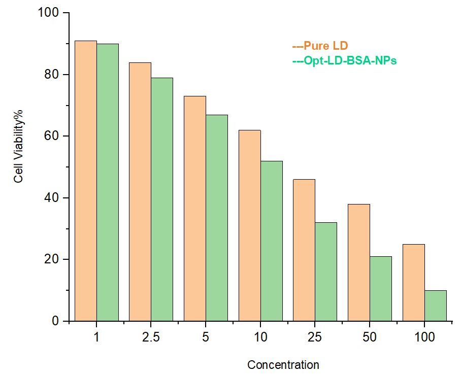 Conclusion: These findings underscore the potential of BSA-based nanocarriers to enhance the solubility, stability, and therapeutic efficacy of hydrophobic anticancer agents, such as LD.