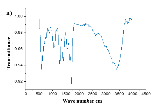 Fig. 4: FTIR spectrum of a) Uncoated scaffold, b) Chitosan-coated scaffold, c) Eudragit-coated scaffold