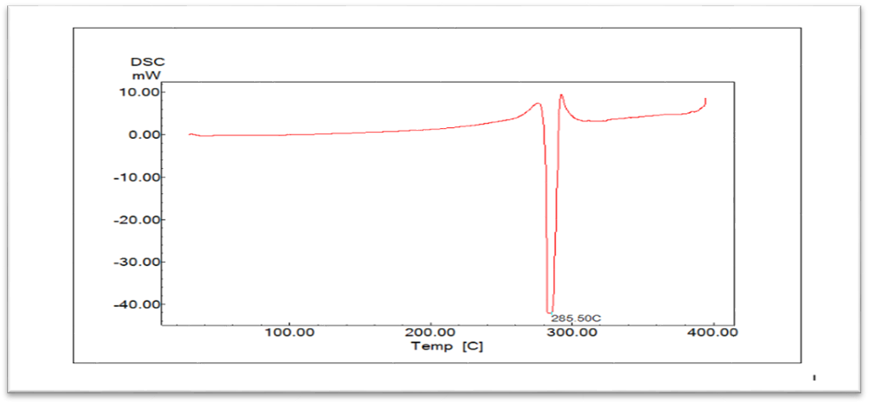 DSC provides the information on the physical characteristics of the sample. According to the thermograms fig. 2, MSL presented a sharp endothermic peak at 285.5 °C, which is agree with references, Gupta K, Roy SB and Newton AMJ, Prabakaran [13, 14].