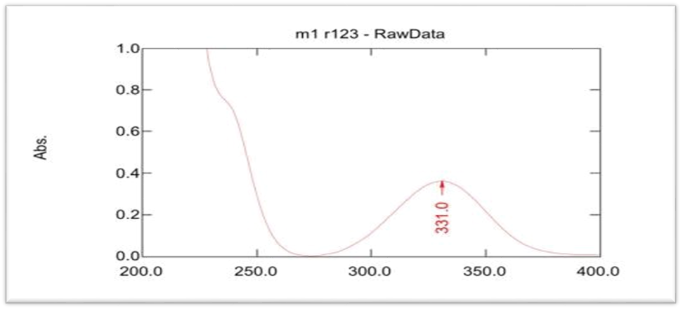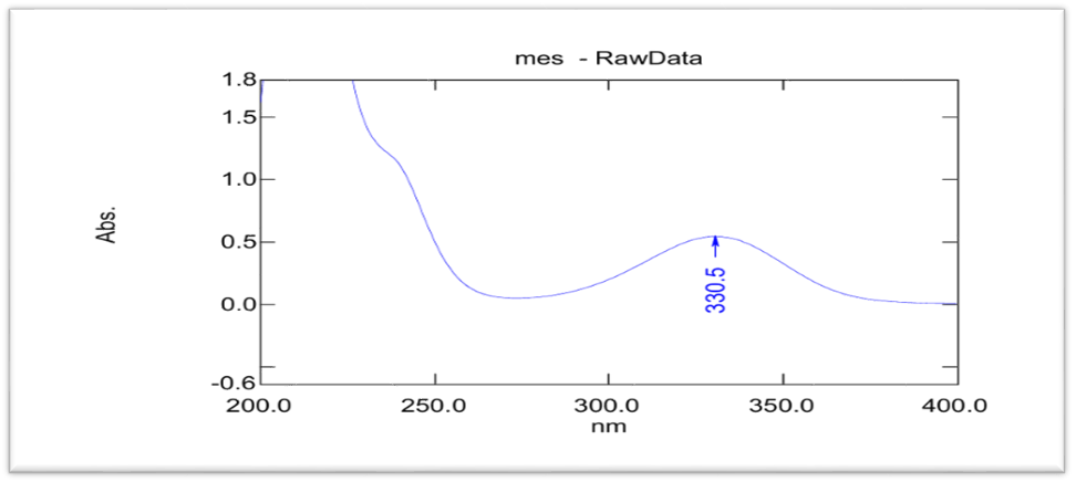 The lambda max of MSL in ethanol was 331 nm, which closed to value obtain by Rakesh Kumar Singh [15] and phosphate buffer pH 7.4 was 330.5 nm that closed to value in these references [9, 16], as shown in UV spectrophotometry fig. 3 and 4, and the calibration curve shown in fig. 5 and 6 for MSL in ethanol and phosphate buffer pH 7.4, and stander curve obtain from data in table 2. That have linear regression with R2 value equal to 0.9994 for ethanol stander curve and linear regression with R2 value equal 0.997 in phosphate buffer pH 7.4.
