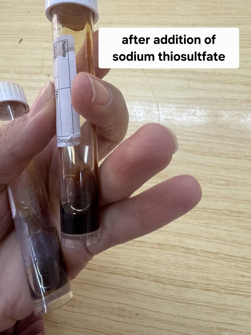 Fig. 11: Effect of sodium thiosulfate on discoloration that visually obtain during our analytical experiment