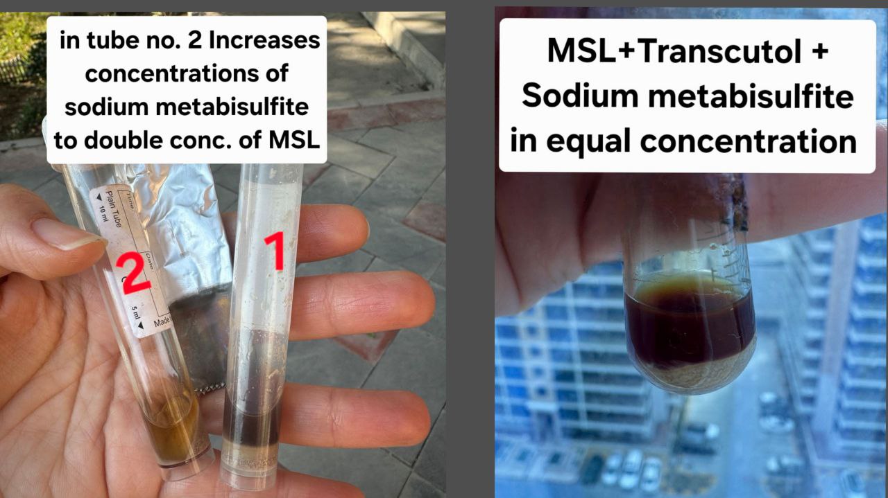 As concentration of sodium metabisulfate increase, the solution well be more clear. to study the effect concentration of sodium metabisulfate on tanscutol MSL liquid shown in fig. 13 [16, 25].